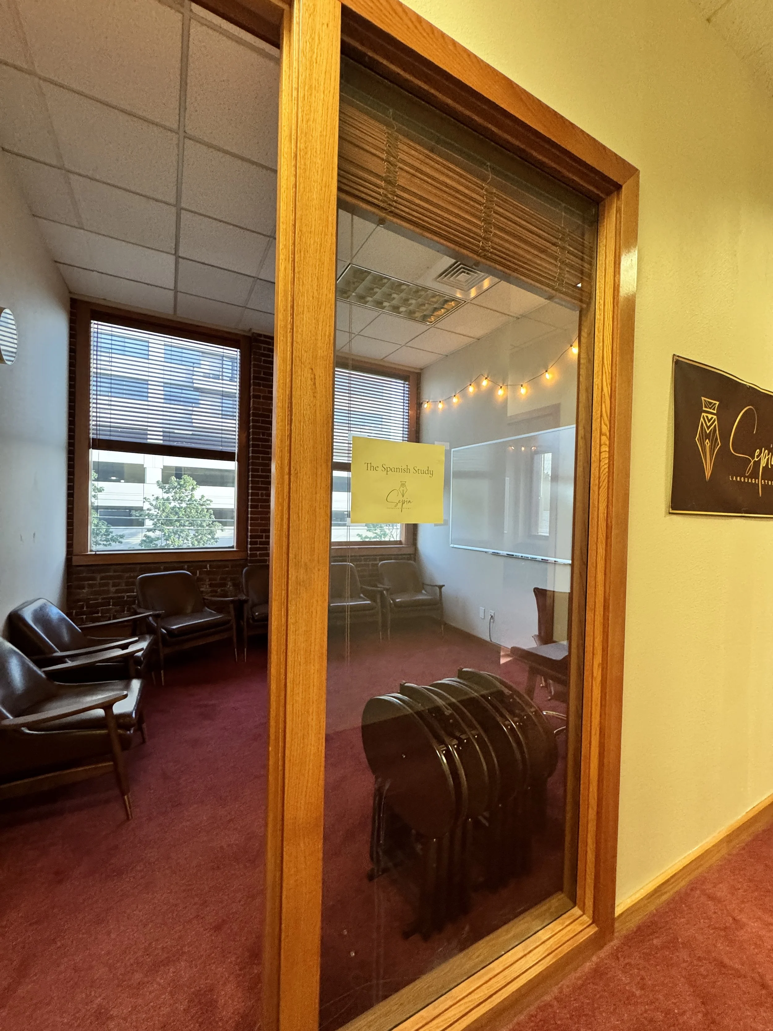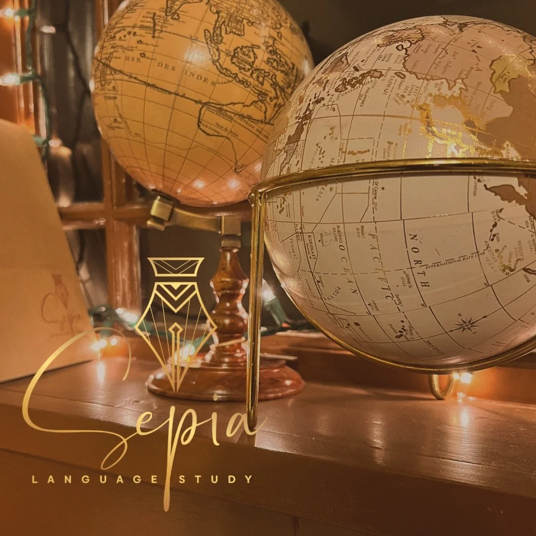 “Study” can refer both to the act of intentional learning and the cozy space it takes place in, which is why we liked the name. At Sepia, we call our classrooms “studies” – each one is cozy and dedicated to a specific target language. Come make yourself at home in our language studies!